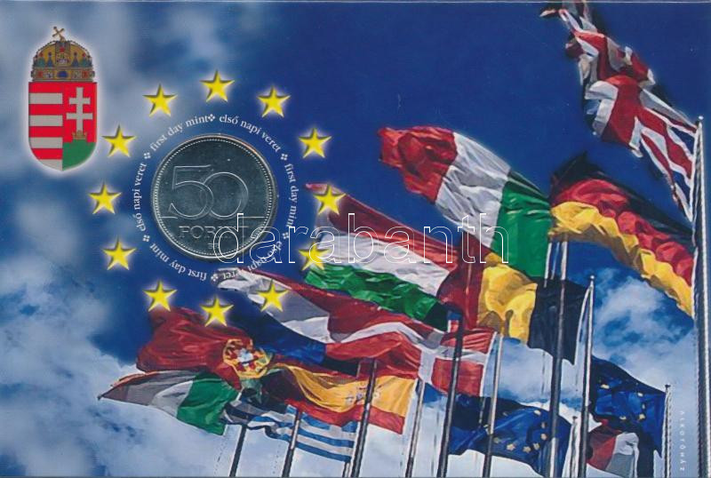 Beschreibung: 2004. 50Ft "Magyarország az EU tagja" elsőnapi veret sorszámozott emléklapon T:BU