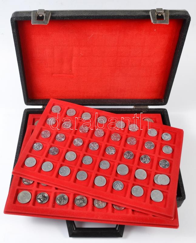 Beschreibung: Vegyes fillér, forint gyűjtemény 6db, különféle érmék tárolására alkalmas berakólapon zárható, műbőr borítású éremtartó táskában T:vegyes