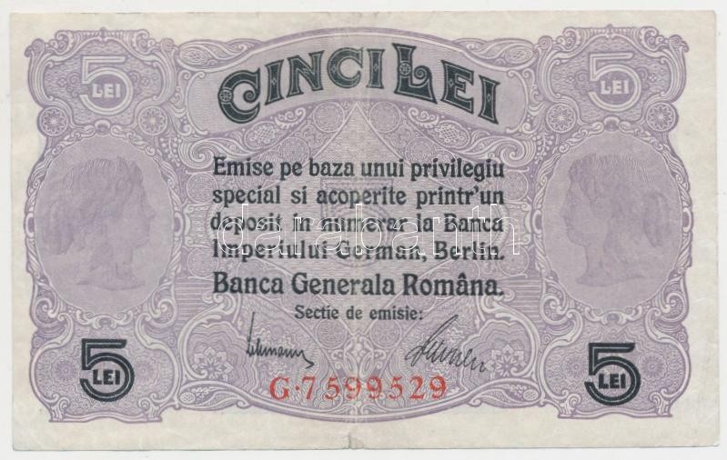 Romania/German occupation 1917... https://www.darabanth.com/de/211-Fernauktion/211.0/Numismatik/Weltweit-Banknoten~600011/RomaniaNemet-megszallas-1917-5L-TIII-3Cbr3ERomaniaGerman-occupation-1917-5-Lei-CF~II871579