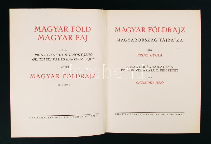 Prinz Gyula-Cholnoky Jenő-Gr. Teleki Pál-Bartucz Lajos: Magyar föld, magyar faj I-IV. kötet. Aranyozott műbőr kötés, képekkel illusztrált, jó állapotban.