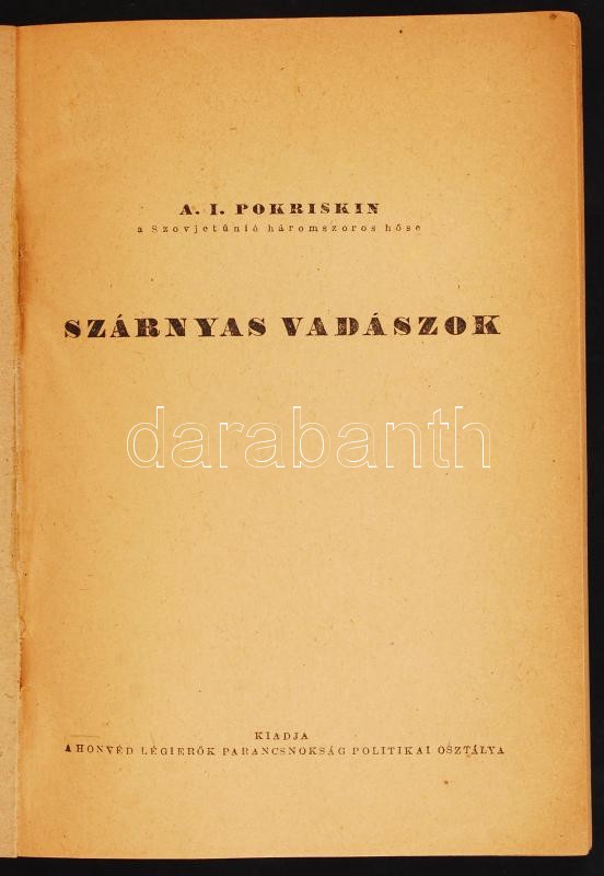 A.I. Pokriskin: Szárnyas vadászok. Bp., é.n. Honvéd Légierők Parancsno... https://www.darabanth.com/de/212-Fernauktion/212.0/Andere-Sammelgebiete/Bucher-Militaria~29/AI-Pokriskin-Szarnyas-vadaszok-Bp-en-Honved-Legierok-Parancsnoksag-Politikai-Osztaly~II859777