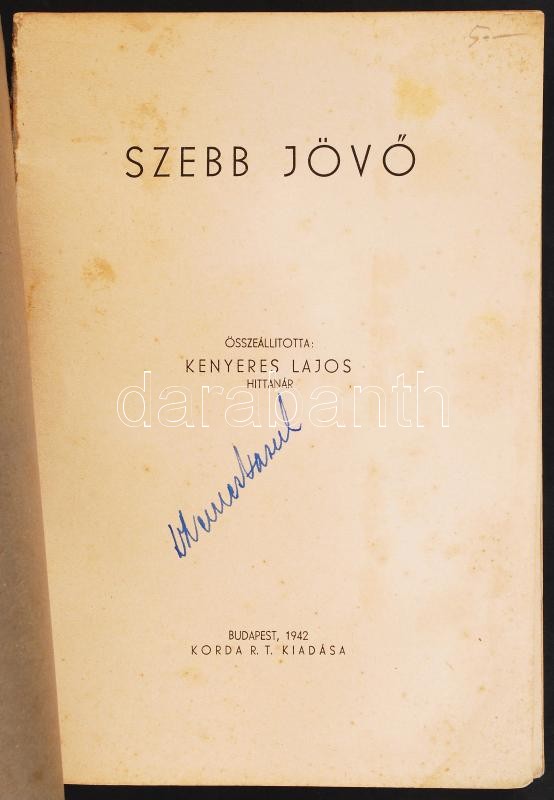 Kenyeres Lajos: Szebb jövő. Bp., 1942, Korda R.T. Kiadói papírkötés, g... https://www.darabanth.com/de/212-Fernauktion/212.0/Andere-Sammelgebiete/Bucher-Sonstige-Raritaten~39/Kenyeres-Lajos-Szebb-jovo-Bp-1942-Korda-RT-Kiadoi-papirkotes-gerince-hianyos-szakadt~II855806