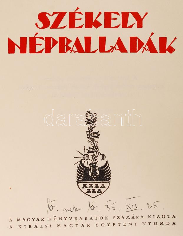 Székely népballadák. A Magyar Könyvbarátok számára kiadta a Királyi Ma... https://www.darabanth.com/de/212-Fernauktion/212.0/Andere-Sammelgebiete/Bucher-Sonstige-Raritaten~39/Szekely-nepballadak-A-Magyar-Konyvbaratok-szamara-kiadta-a-Kiralyi-Magyar-Egyetemi-Nyomda-~II879031