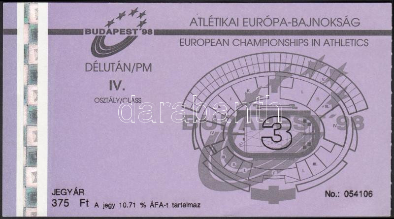Beschreibung: 1998 Bp., Atlétikai Európa-Bajnokság belépőjegy /