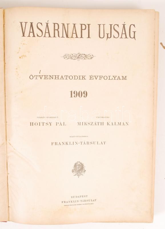 1909 Vasárnapi Ujság. Szerk. Hoitsy Pál, 1. fél évfolyama, bekötve. Fé... https://www.darabanth.com/de/212-Fernauktion/212.0/Andere-Sammelgebiete/Drucksachen~26/1909-Vasarnapi-Ujsag-Szerk-Hoitsy-Pal-1-fel-evfolyama-bekotve-Felvaszon-kotesben~II835987