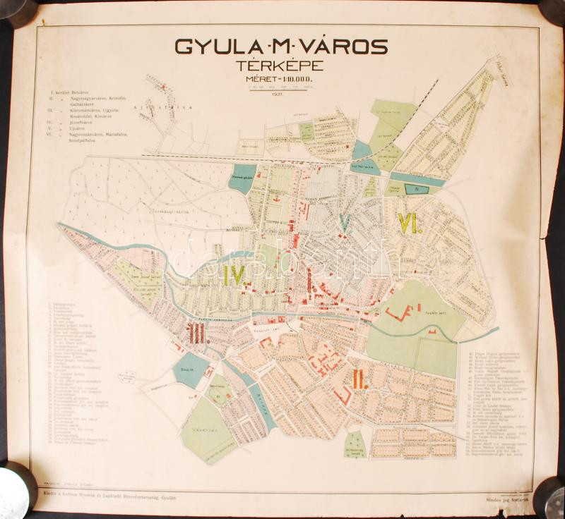 1931 Gyula város térképe, Magyar Földrajzi Intézet, 48x45 cm https://www.darabanth.com/de/212-Fernauktion/212.0/Andere-Sammelgebiete/Drucksachen~26/1931-Gyula-varos-terkepe-Magyar-Foldrajzi-Intezet-48x45-cm~II858223