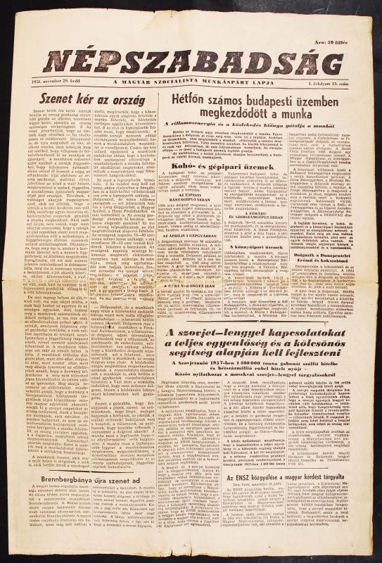 1956 Népszabadság c. lap november 20. száma a forradalom híreivel https://www.darabanth.com/de/212-Fernauktion/212.0/Andere-Sammelgebiete/Drucksachen~26/1956-Nepszabadsag-c-lap-november-20-szama-a-forradalom-hireivel~II830622