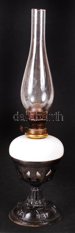 Beschreibung: Fém petróleumlámpa üveg burával és porcelán betéttel, m:41 cm