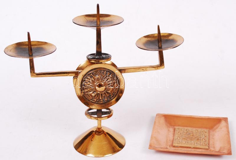 Beschreibung: Szabó Gy. jelzéssel: Háromágú rész gyertyatartó, hamutartó, gyertyatartó m: 18 cm, hamutartó: 10x10 cm