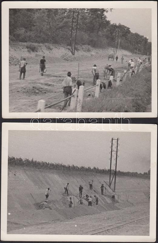 Beschreibung: 1935 Kápolnásnyék körül építik az új utat, 2 db feliratozott fénykép, 9x12 cm
