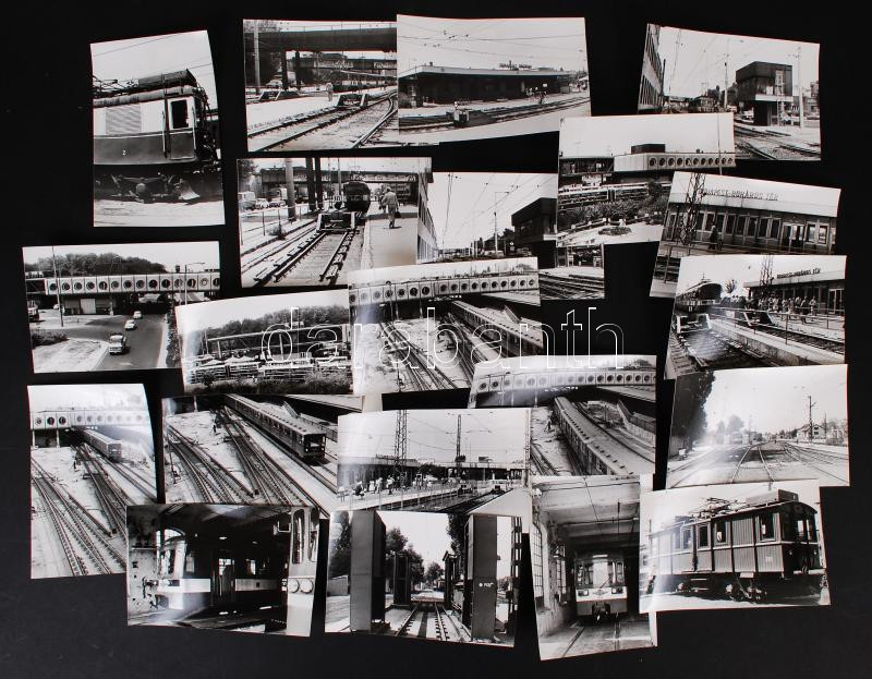 Beschreibung: 1986 Karai Sándor: HÉV állomások, műszaki berendezések - Boráros tér, Csepel, Soroksári út, Kőér u. és Kőbánya-Kispest – 21 db fotólap, 9x14 cm