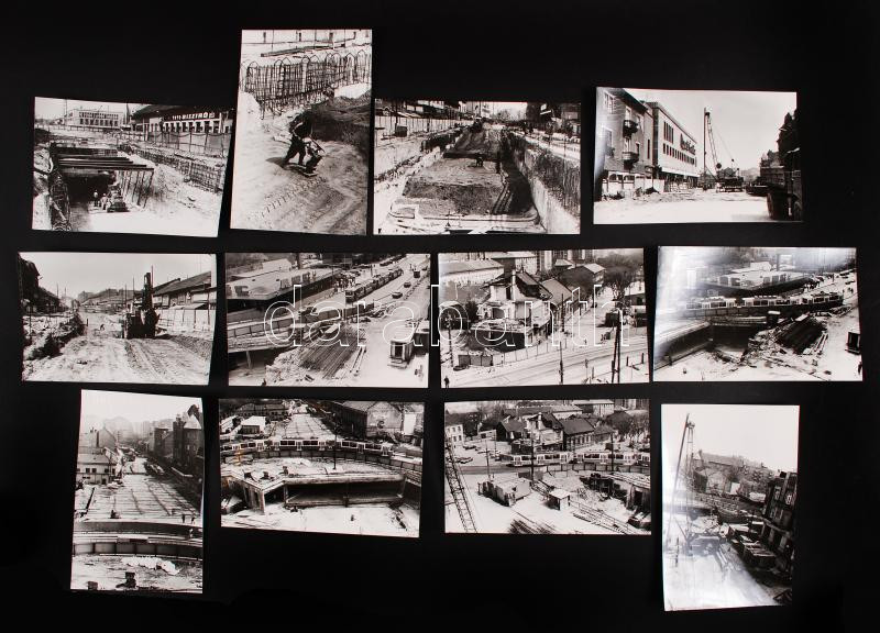 1988 Budapest - Metróépítés és városrendezés, a IV. ker. Bajcsy Zs. állomás és környéke helyszíni fotói, 21 db fénykép az építésről, a közlekedési viszonyokról, 9x14 cm