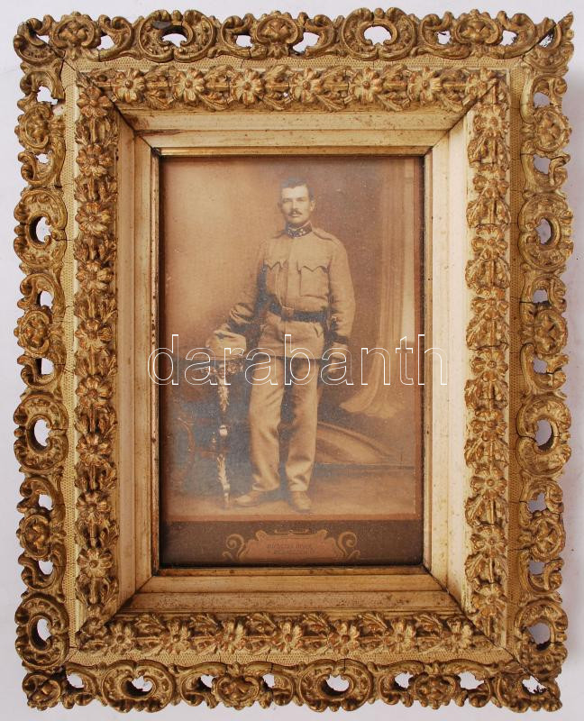 Beschreibung: cca 1910-1920 Ruzicska Gyula (Debrecen): Katona emlék, kabinetfotó díszes keretben, képméret 16x11 cm, keret 26x21