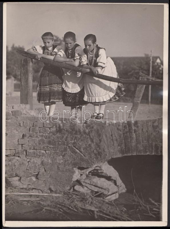 Beschreibung: cca 1920-1930 Kerny István (1879-1963): Vasárnap délután, pecséttel jelzett vintage néprajzi, viselettörténeti fotó, 24x18 cm