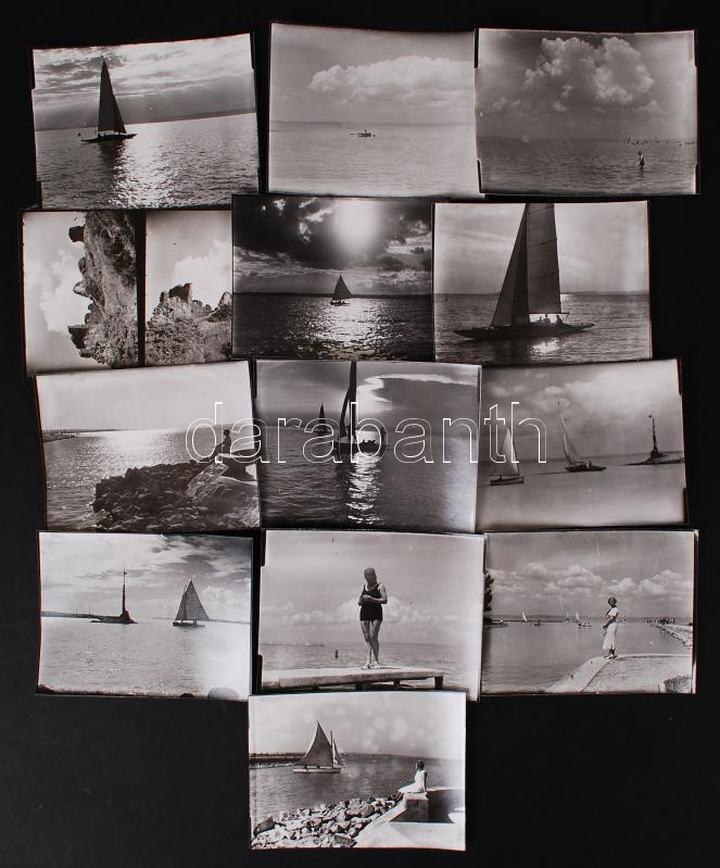 Beschreibung: cca 1930-1940 Balatoni táj- és életképek, korabeli üveglemez negatívokról készült későbbi másolatok, 13 db fotó 9x12 cm