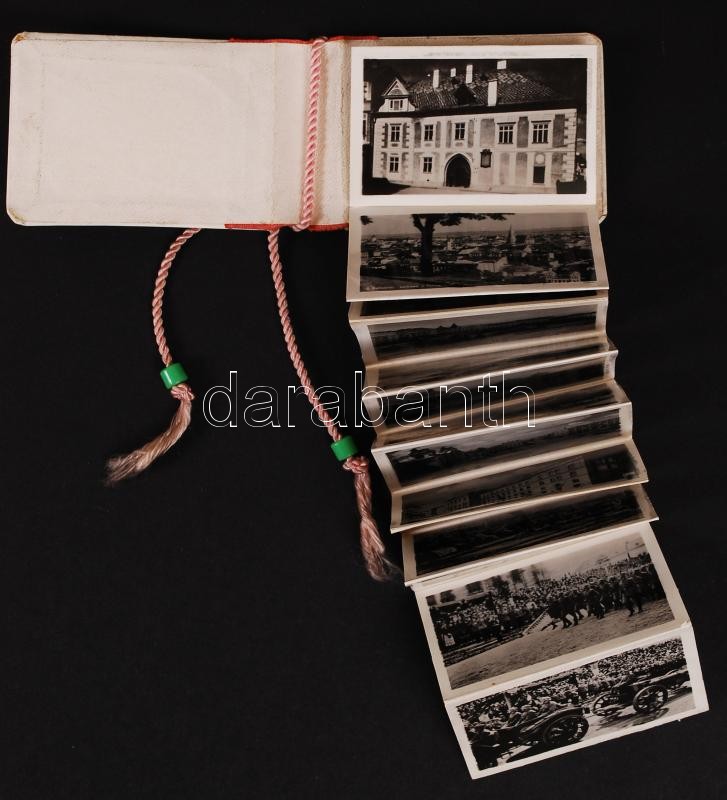 Beschreibung: cca 1940 Kolozsvár felszabadulásának emlékére, 17 db fotót tartalmazó kis leporelló, 6x4 cm-es fotókkal