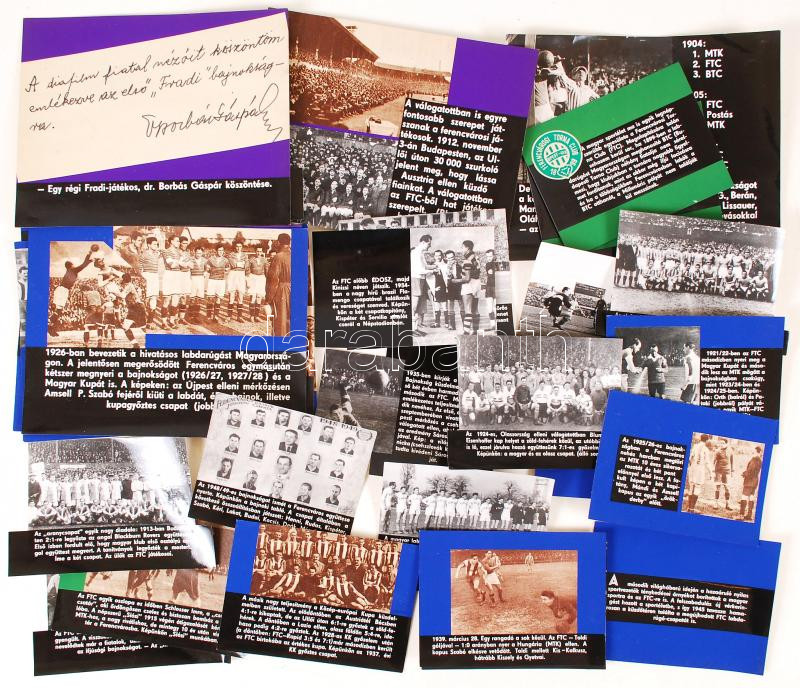 Beschreibung: cca 1960 A Hajrá Vasas, Hajrá Fradi c. diafilm eredeti, komplett, fényképezett kockái, a gyártáshoz kb 21x17 cm-es táblák szövegekkel,