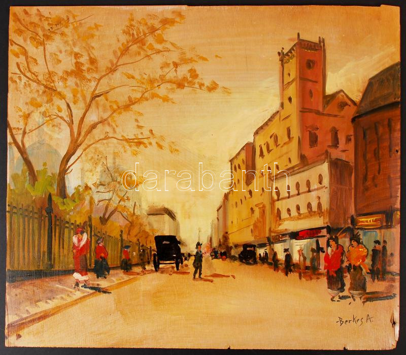 Berkes jelzéssel: Utcakép. Olaj, farost, 53×46 cm https://www.darabanth.com/de/212-Fernauktion/212.0/Andere-Sammelgebiete/Gemalde-und-Grafiken~1/Berkes-jelzessel-Utcakep-Olaj-farost-53C39746-cm~II879635