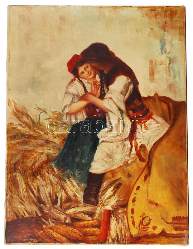 Beschreibung: Dunay jelzéssel: Pásztor óra. Hollósi után. Olaj, vászon, 80×60 cm