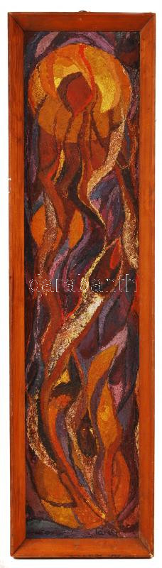 Beschreibung: Tarcsy B. Katalin: Virág. Olaj, farost, jelzett, keretben, 73×17 cm