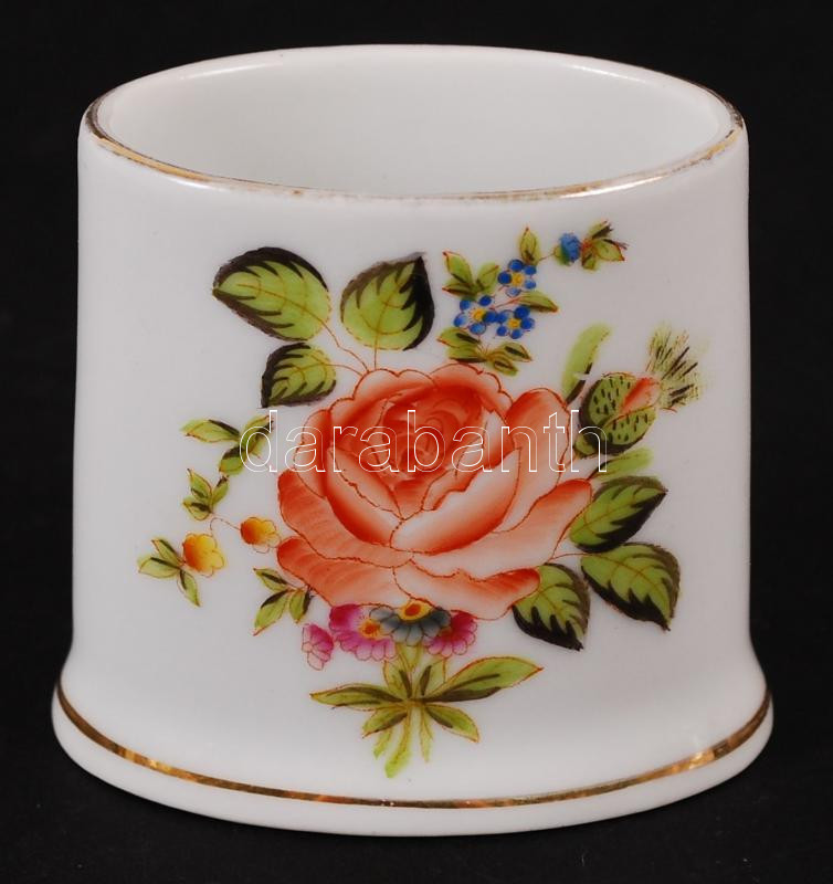 Beschreibung: Herendi fogpiszkáló tartó, kézzel festett, jelzett, alján apró lepattanás, 5×6 cm