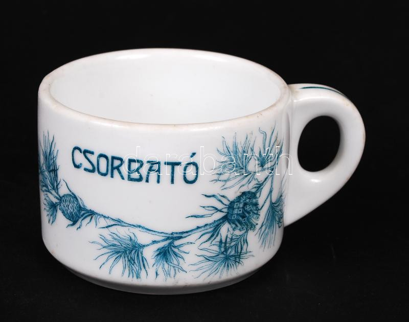 Beschreibung: Hüttl Tivadar csésze "Csorbató" felirattal, matricás, jelzett, alj nélkül