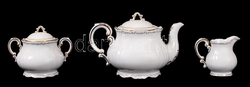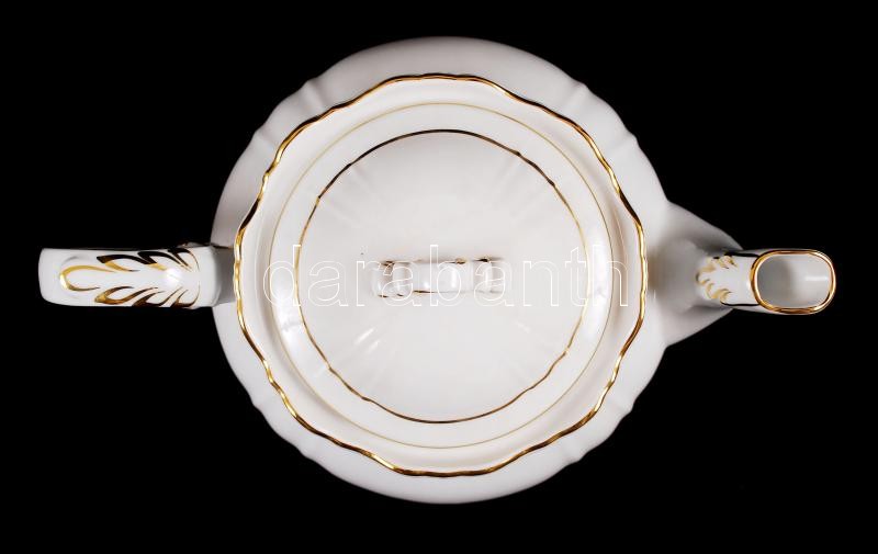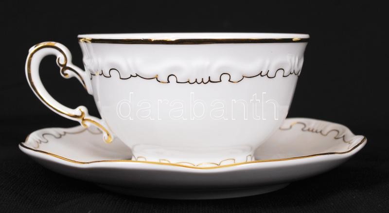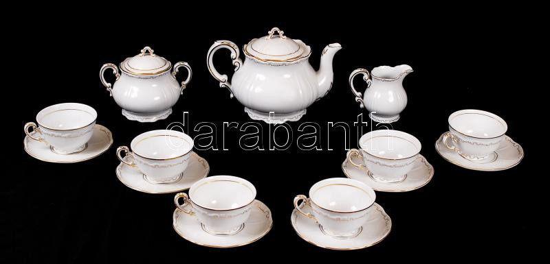 Beschreibung: Komplett, hibátlan hat személyes Zsolnay porcelán teáskészlet aranyozott mintával / Complete Zsolnay tea set