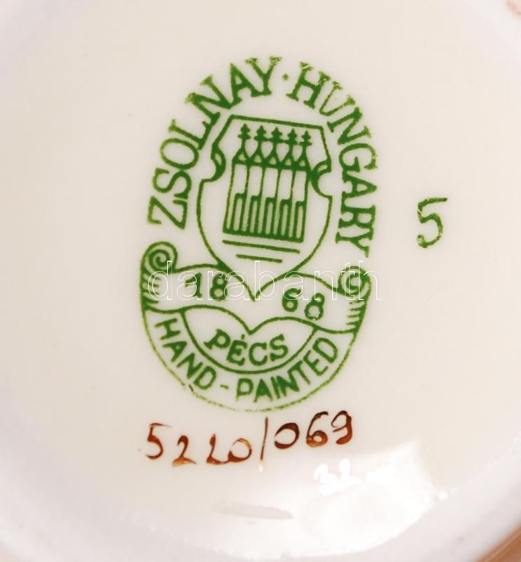 Zsolnay kis váza, kézzel festett, jelzett, hibátlan, m:11 cm https://www.darabanth.com/de/212-Fernauktion/212.0/Andere-Sammelgebiete/Porzellan~6/Zsolnay-kis-vaza-kezzel-festett-jelzett-hibatlan-m11-cm~II879442