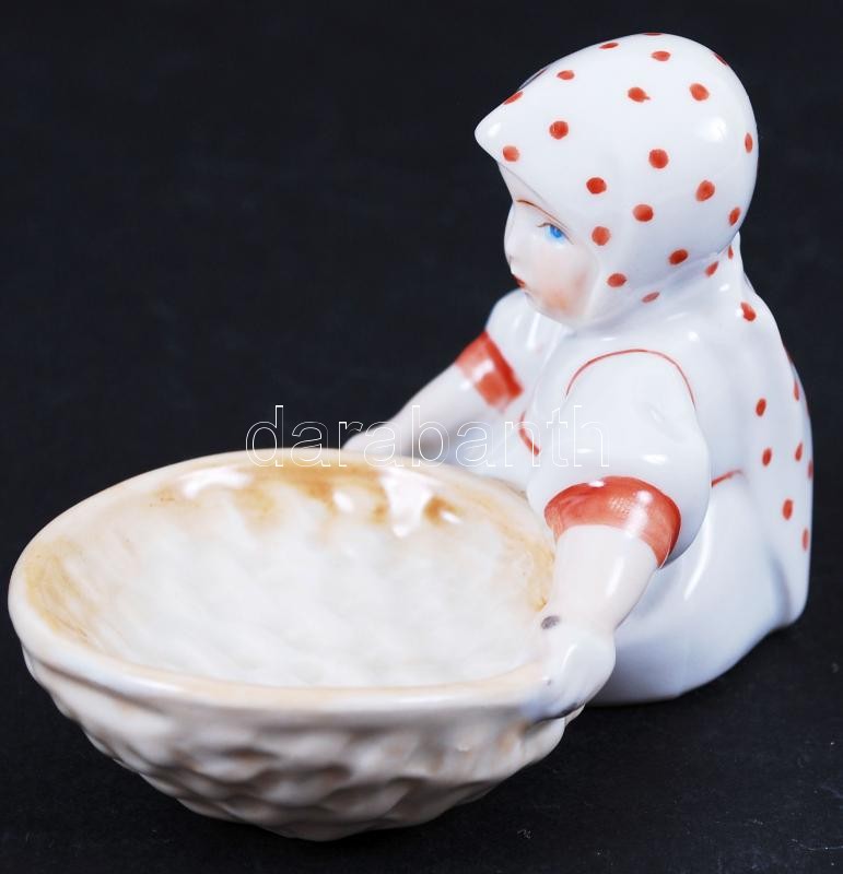 Beschreibung: Zsolnay kislány a kosárral, kézzel festett, jelzett (pajzs), hibátlan, m:7 cm, h:10 cm