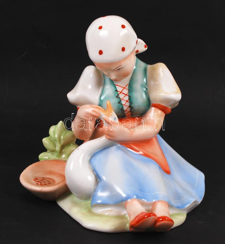 Zsolnay libát tömő lány, kézzel festett, jelzett, hibátlan, m:14 cm, h... https://www.darabanth.com/de/212-Fernauktion/212.0/Andere-Sammelgebiete/Porzellan~6/Zsolnay-libat-tomo-lany-kezzel-festett-jelzett-hibatlan-m14-cm-h16-cm~II867032