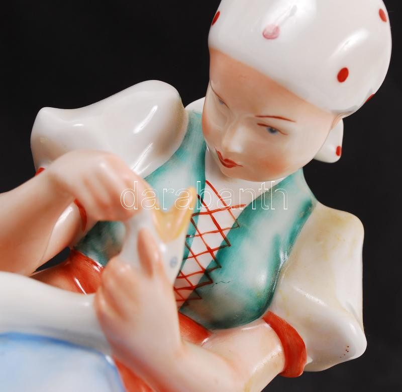 Beschreibung: Zsolnay libát tömő lány, kézzel festett, jelzett, hibátlan, m:14 cm, h:16 cm