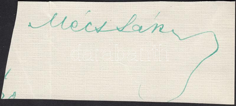 Beschreibung: Mécs László (1895-1978) költő, lapszerkesztő, premontrei szerzetes aláírása papírkivágáson