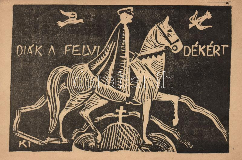 Beschreibung: Hungarian Irredenta, Horthy 'Diák a Felvidékért' published by 'makói Csanád vezér gimnázium ifjúsága' artist signed (EK)