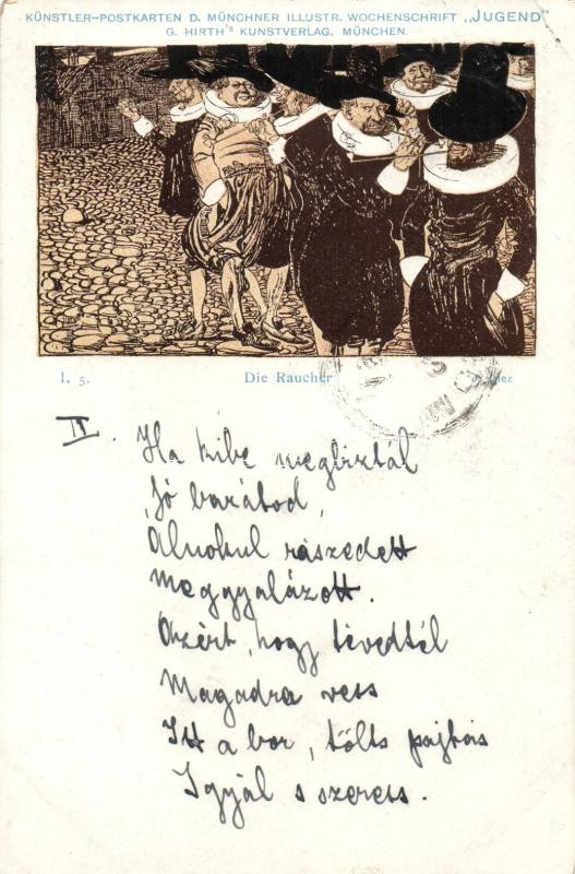 1898 Die Raucher / Smoking men, Hirth's Jugend series I. 5. s: I. Diez... https://www.darabanth.com/de/212-Fernauktion/212.0/Ansichtskarten/Kunstlerkarten~600099/1898-Die-Raucher-Smoking-men-Hirths-Jugend-series-I-5-s-I-Diez-EK~II882060