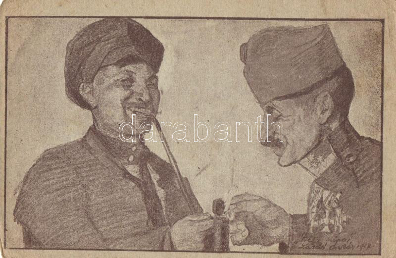 Békepipa / Friedens Pfeife, peace pipe, K.u.K. military humour card s:... https://www.darabanth.com/de/212-Fernauktion/212.0/Ansichtskarten/Militaria~600088/Bekepipa-Friedens-Pfeife-peace-pipe-KuK-military-humour-card-s-Lazar-Oszkar-EB~II862224