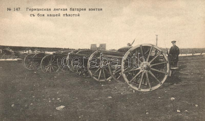 WWI Captured German lightweight cannons by the Russians https://www.darabanth.com/de/212-Fernauktion/212.0/Ansichtskarten/Militaria~600088/WWI-Captured-German-lightweight-cannons-by-the-Russians~II877656