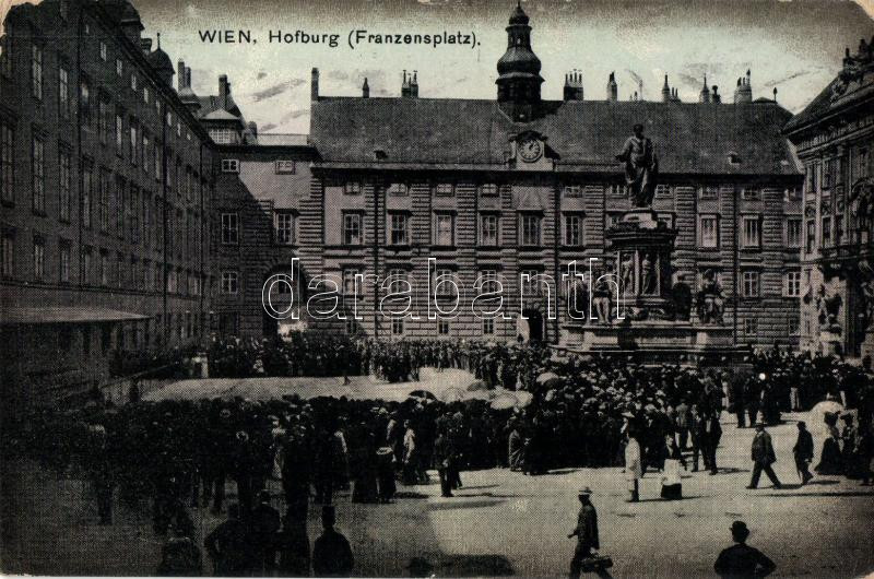 Vienna, Wien; Hofburg, Franzensplatz https://www.darabanth.com/de/212-Fernauktion/212.0/Ansichtskarten/Osterreich~600061/Vienna-Wien-Hofburg-Franzensplatz~II883952