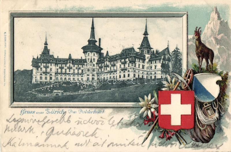 Beschreibung: Zürich, Das Dolderhotel, coat of arms, Emb. litho