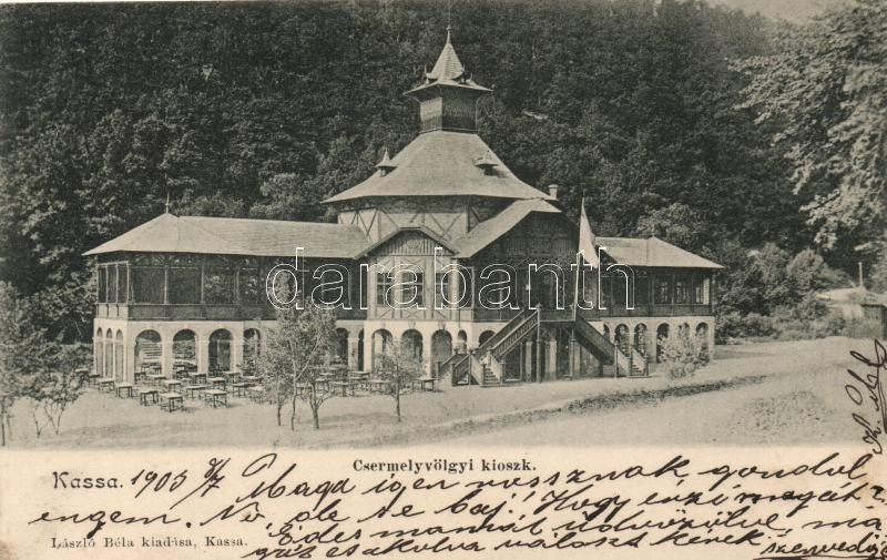 Kassa, Csermelyvölgyi kioszk, kiadja László Béla / valley, kiosk (EK) https://www.darabanth.com/de/212-Fernauktion/212.0/Ansichtskarten/Slowakei~50/Kassa-Csermelyvolgyi-kioszk-kiadja-Laszlo-Bela-valley-kiosk-EK~II878035