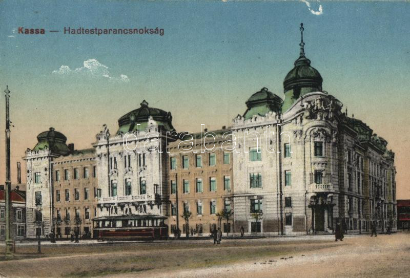Kassa, Hadtestparancsnokság / military office https://www.darabanth.com/de/212-Fernauktion/212.0/Ansichtskarten/Slowakei~50/Kassa-Hadtestparancsnoksag-military-office~II878271