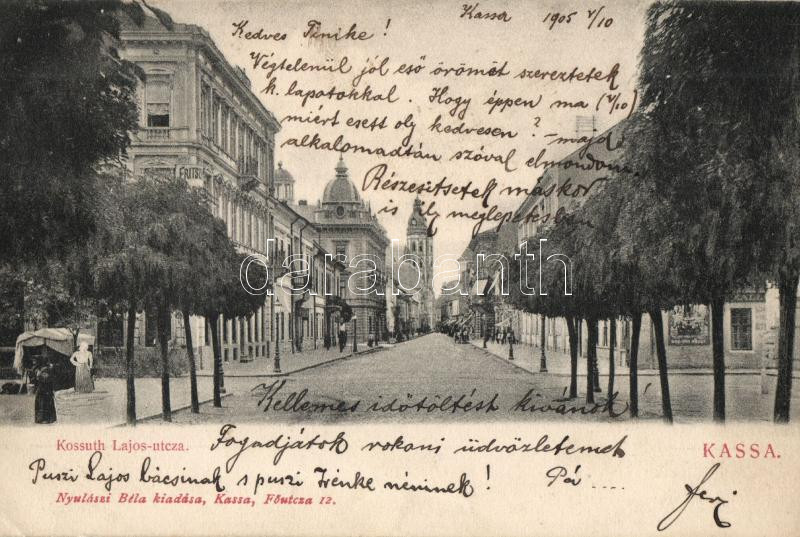 Kassa, Kossuth Lajos utca; Nyulászi Béla kiadása / Kossuth street https://www.darabanth.com/de/212-Fernauktion/212.0/Ansichtskarten/Slowakei~50/Kassa-Kossuth-Lajos-utca-Nyulaszi-Bela-kiadasa-Kossuth-street~II878268