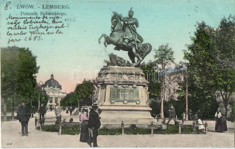 Lviv, Lwów, Lemberg; Pomnik Sobieskiego / statue (EK) https://www.darabanth.com/de/212-Fernauktion/212.0/Ansichtskarten/Ukraine~600142/Lviv-Lwow-Lemberg-Pomnik-Sobieskiego-statue-EK~II879705