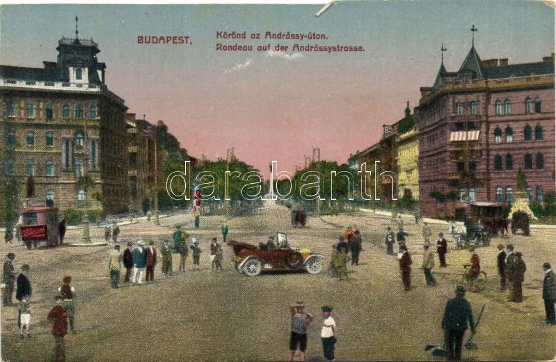 Budapest VI. Körönd, Andrássy út (vágott / cut) https://www.darabanth.com/de/212-Fernauktion/212.0/Ansichtskarten/Ungarn~48/Budapest-VI-Korond-Andrassy-ut-vagott-cut~II859083
