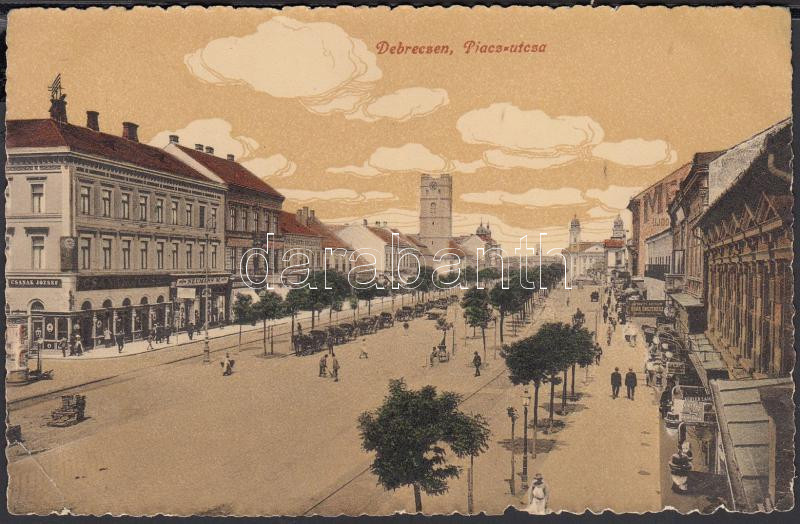 Debrecen, Piac utca, Neumann M. üzlete, Csanak József üzlete, ékszerés... https://www.darabanth.com/de/212-Fernauktion/212.0/Ansichtskarten/Ungarn~48/Debrecen-Piac-utca-Neumann-M-uzlete-Csanak-Jozsef-uzlete-ekszeresz-uzlet-Kozponti-Szal~II878026