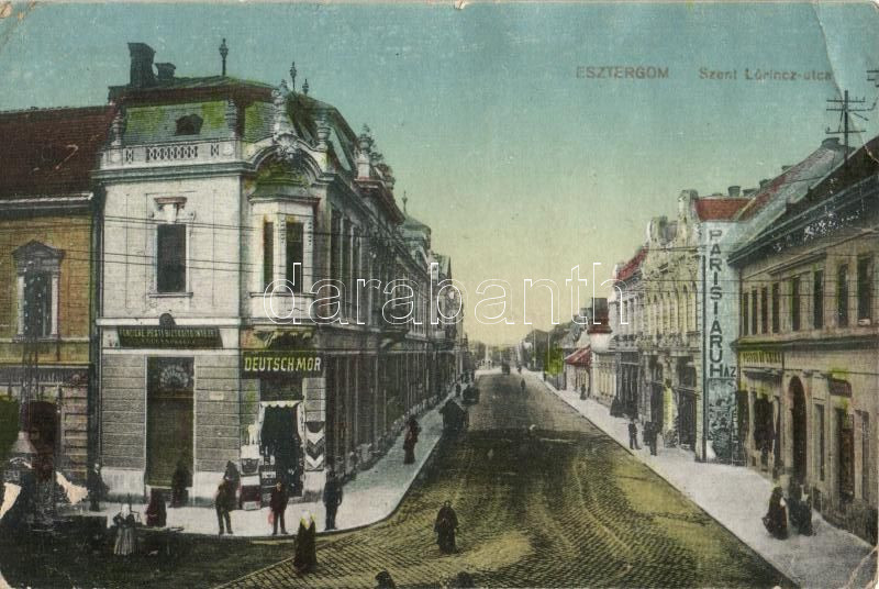 Esztergom, Szent Lőrinc utca, Párisi Áruház, Deutsch Mór üzlete, Fonci... https://www.darabanth.com/de/212-Fernauktion/212.0/Ansichtskarten/Ungarn~48/Esztergom-Szent-Lorinc-utca-Parisi-Aruhaz-Deutsch-Mor-uzlete-Fonciere-Pesti-Biztosito-In~II883068