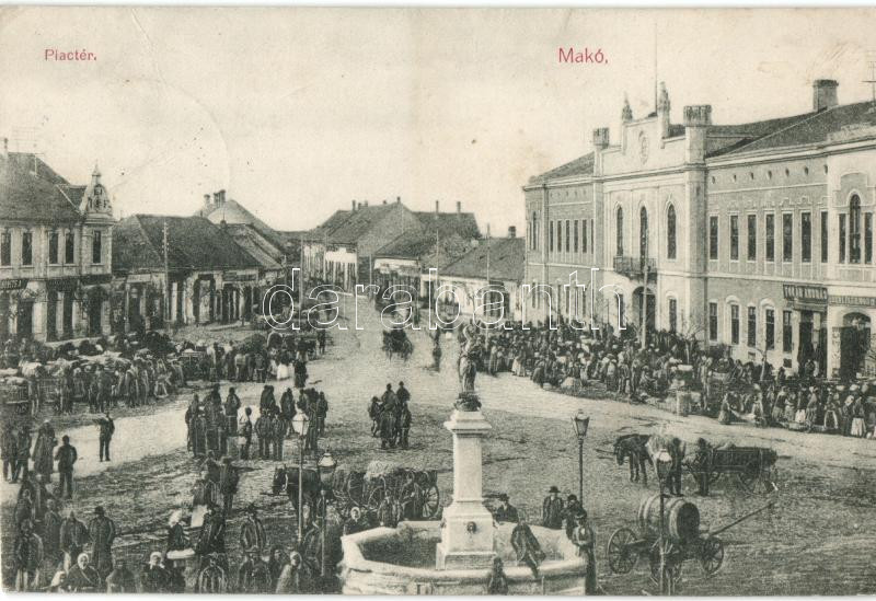 Beschreibung: Makó, Piac tér, Tokár András és Oberliner Mór kereskedései, Vészi Dezső kiadása (EK)