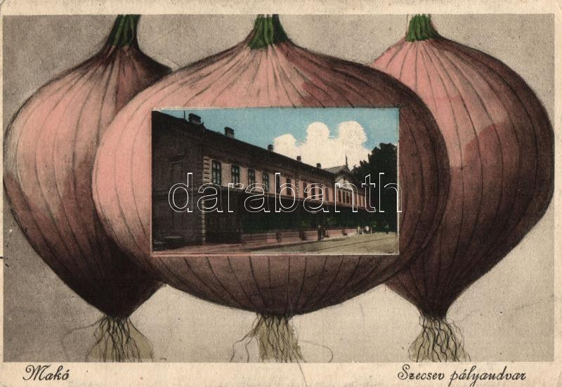 Makó, hagyma, Szecsev pályaudvar, vasútállomás (EK) https://www.darabanth.com/de/212-Fernauktion/212.0/Ansichtskarten/Ungarn~48/Mako-hagyma-Szecsev-palyaudvar-vasutallomas-EK~II878892