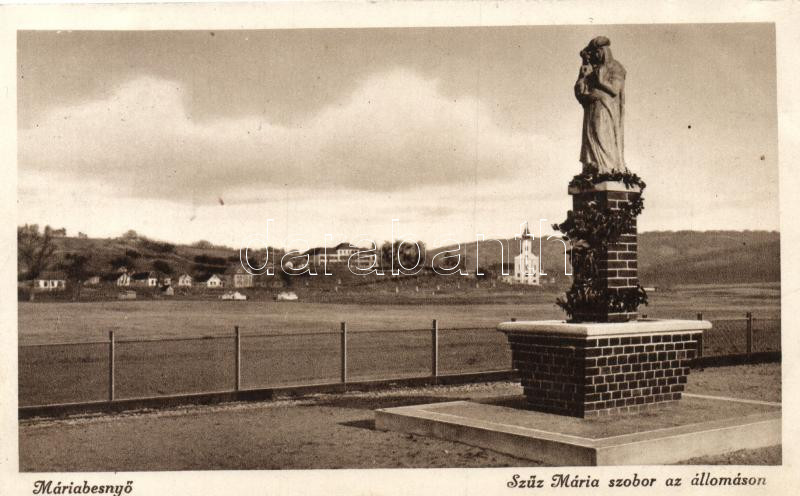 Máriabesnyő, Szűz Mária szobor a vasútállomáson https://www.darabanth.com/de/212-Fernauktion/212.0/Ansichtskarten/Ungarn~48/Mariabesnyo-Szuz-Maria-szobor-a-vasutallomason~II878291
