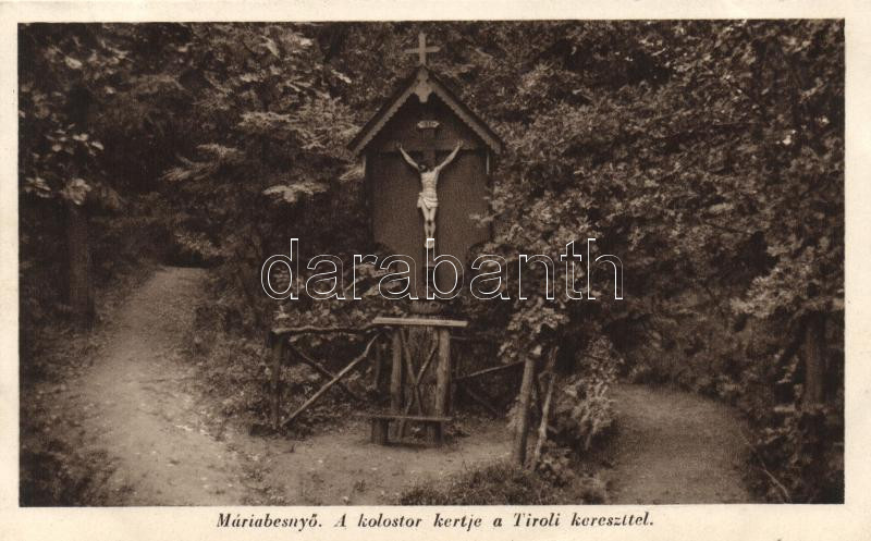 Máriabesnyő, kolostor kertje, Tiroli kereszt https://www.darabanth.com/de/212-Fernauktion/212.0/Ansichtskarten/Ungarn~48/Mariabesnyo-kolostor-kertje-Tiroli-kereszt~II878141