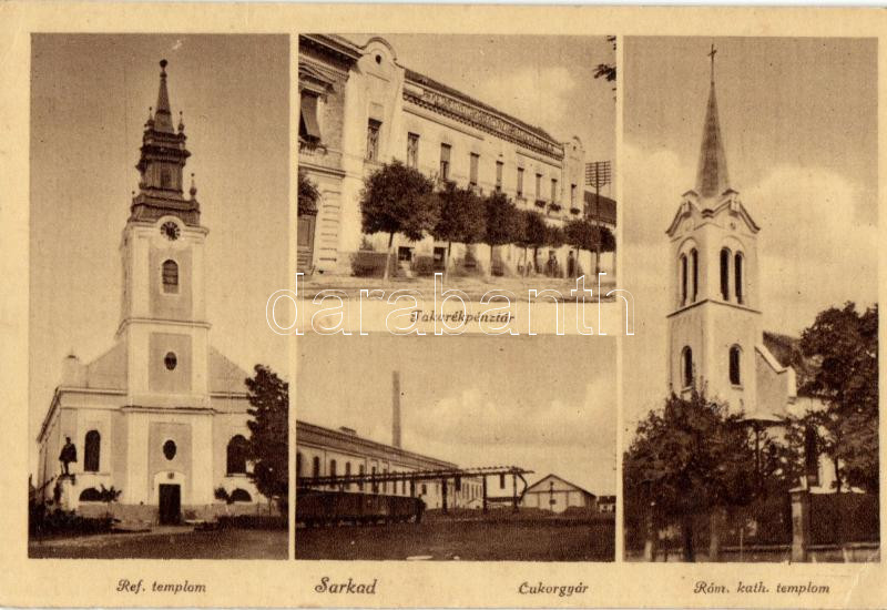 Sarkad, Római katolikus és Református templom, Takarékpénztár, cukorgy... https://www.darabanth.com/de/212-Fernauktion/212.0/Ansichtskarten/Ungarn~48/Sarkad-Romai-katolikus-es-Reformatus-templom-Takarekpenztar-cukorgyar-EK~II878950